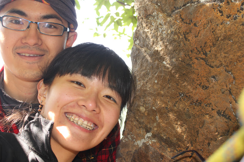 完攀某一條5.7的裂隙。很久很久沒爬岩了。